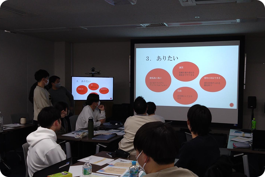 自己理解を深めるためのワークやアウトプット、ディスカッションを経て、自分自身とシステムズの「らしさ」「ありたい」を明確にしていきます。